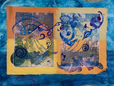 Rarely do I start with a preconceived image or idea. In the coloring process, shapes, images or figures occur. My job is to look for the story. And wait for it to reveal itself.